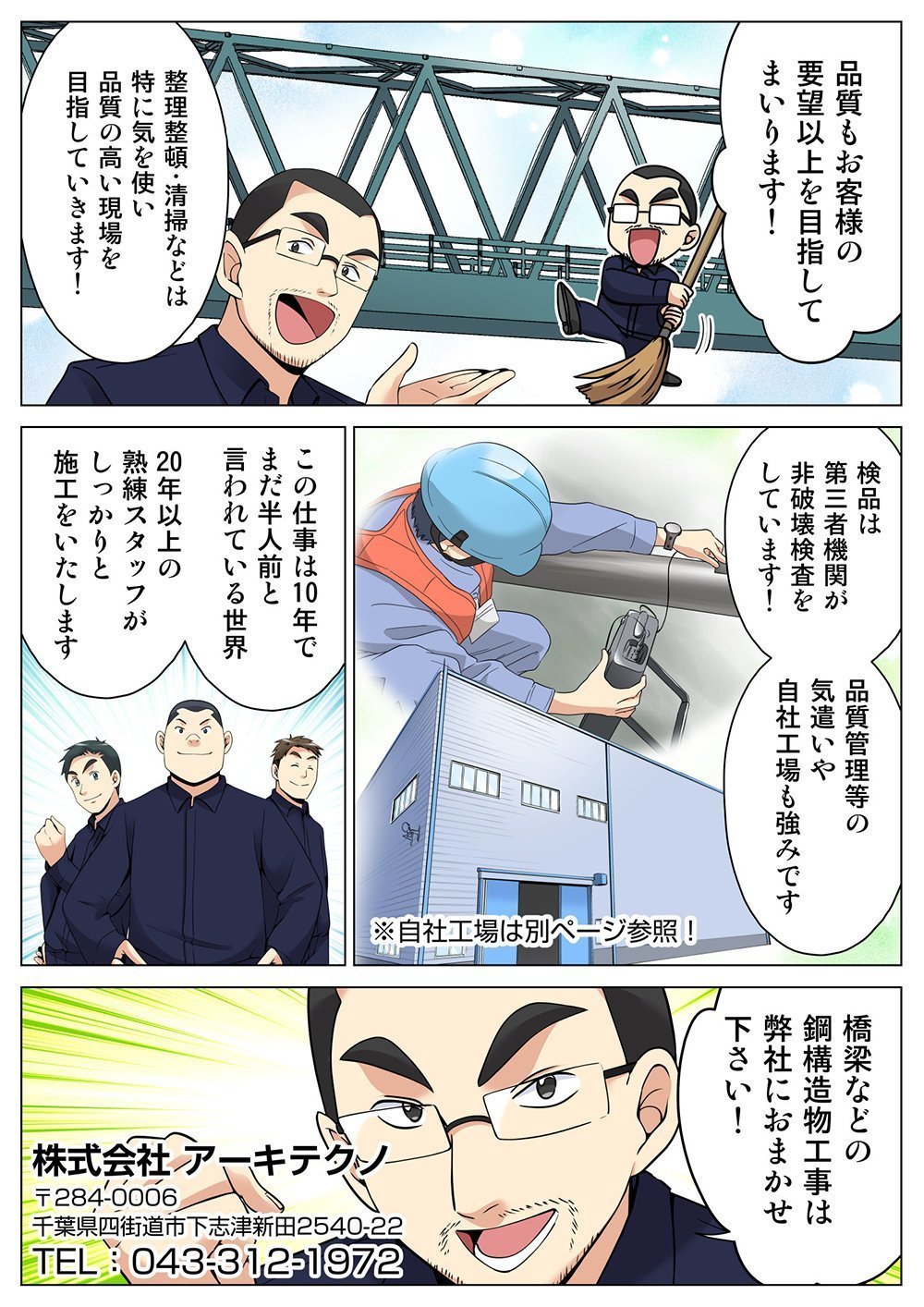 橋梁工事や鉄骨工事などの鋼構造物工事は、株式会社アーキテクノにお任せください。弊社では自社工場を保有しており、製作から設置まで一貫した対応が可能。他社に依頼した際にありがちな共有漏れの心配もありません。ワンストップで短工期の施工をお約束いたします。